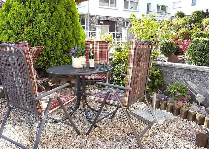 Overlooking the garden, the 77 m^2 Fewo Blutenreich is about 10 minutes by car from Barenbrunnen in Traben-Trarbach. Staying in this 1-bedroom apartment, nestled a short way from Grevenburg Castle Ruins, guests can relax on a terrace.